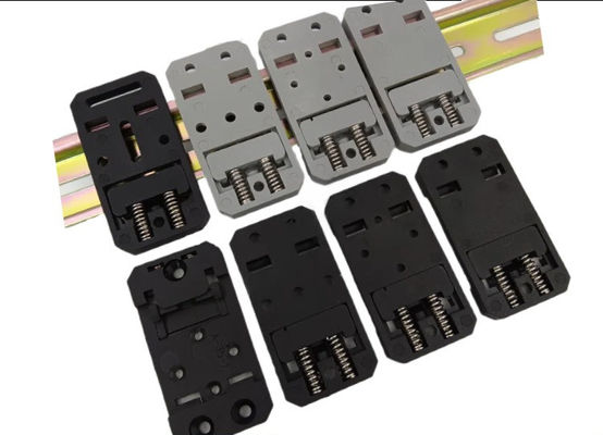 35 ملم عريض 67.5 ملم طويل نايلون PA66 DIN ريل مشابك الحامل A-35-2 في اللون الأسود والرمادي